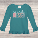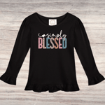 The shirt features charming ruffle accents along the hem and sleeves, adding a touch of playfulness to any outfit. Made from a soft, breathable cotton blend, this shirt ensures all-day comfort, allowing your child to move freely and comfortably.